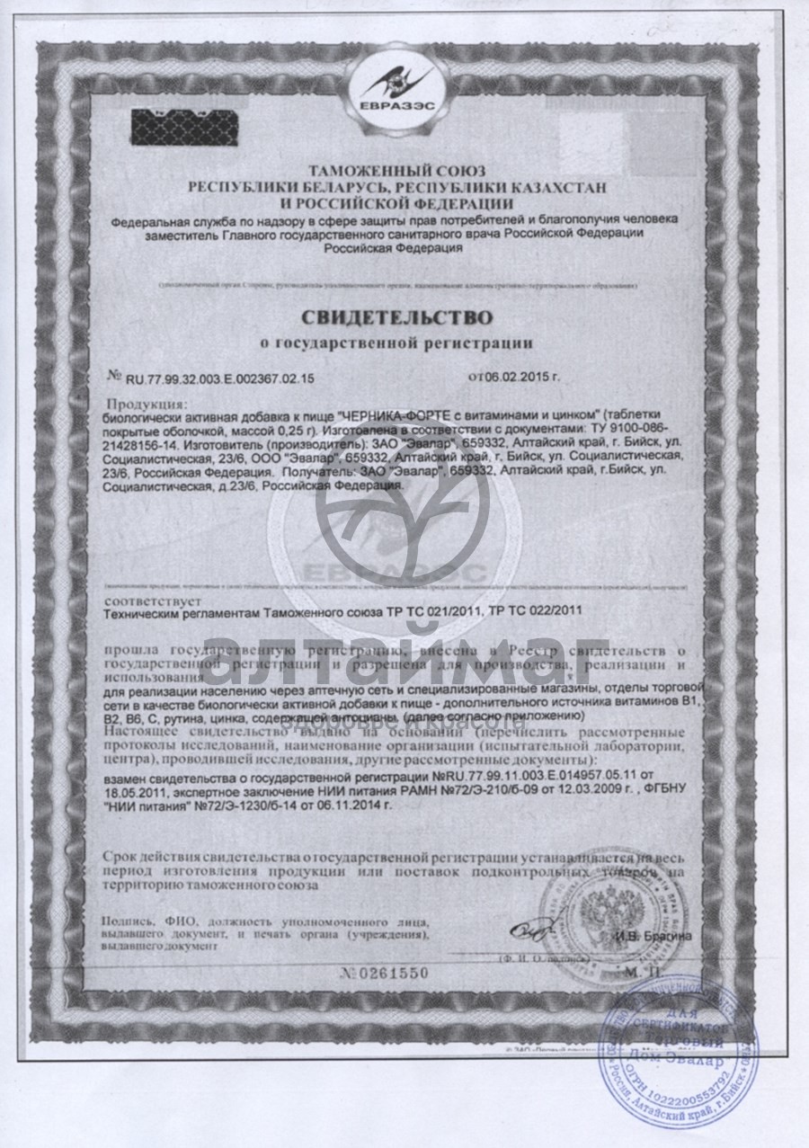 Особо следует отметить, что БАД «Черника-Форте» с витаминами и цинком производится в условиях фармацевтического производства «Эвалар» с многоступенчатым контролем качества в соответствии с международным стандартом GMP. Система контроля качества на всех этапах производства - от сырья до готовой продукции - позволяет гарантировать подлинность и высокое качество как используемого сырья, так и готовой продукции. Эффективность «Черники-Форте» с витаминами и цинком подтверждена многочисленными положительными отзывами врачей и пациентов, пользуется заслуженной популярностью. «Черника-Форте» отмечена международной наградой «Экологически безопасная продукция», названа в числе 100 лучших товаров России.