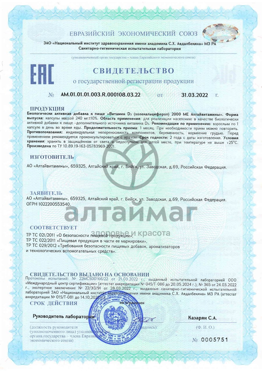 Есть вопросы по товару "Витамин D3 2000ME Алтайвитамины №30"?